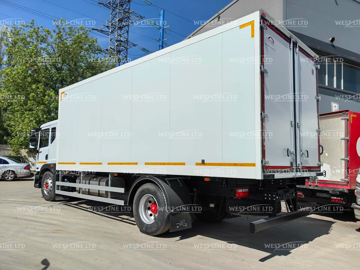 - Объемный фургон: Промтоварная надстройка на базе C180NA вмещает до 19 европаллет, что делает этот автомобиль полноценным лидером в сегменте крупногабаритных городских и пригородных перевозок.