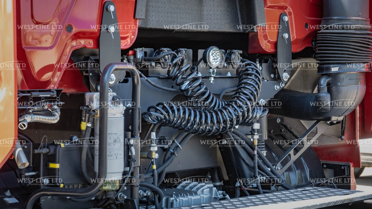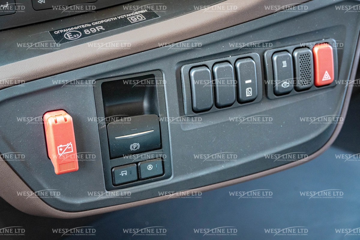 - Подготовка ДОПОГ: Автомобиль уже с завода укомплектован всем необходимым для перевозки опасных грузов: защищенная электропроводка, кнопка массы в кабине и снаружи, проблесковые маячки и другие элементы безопасности.