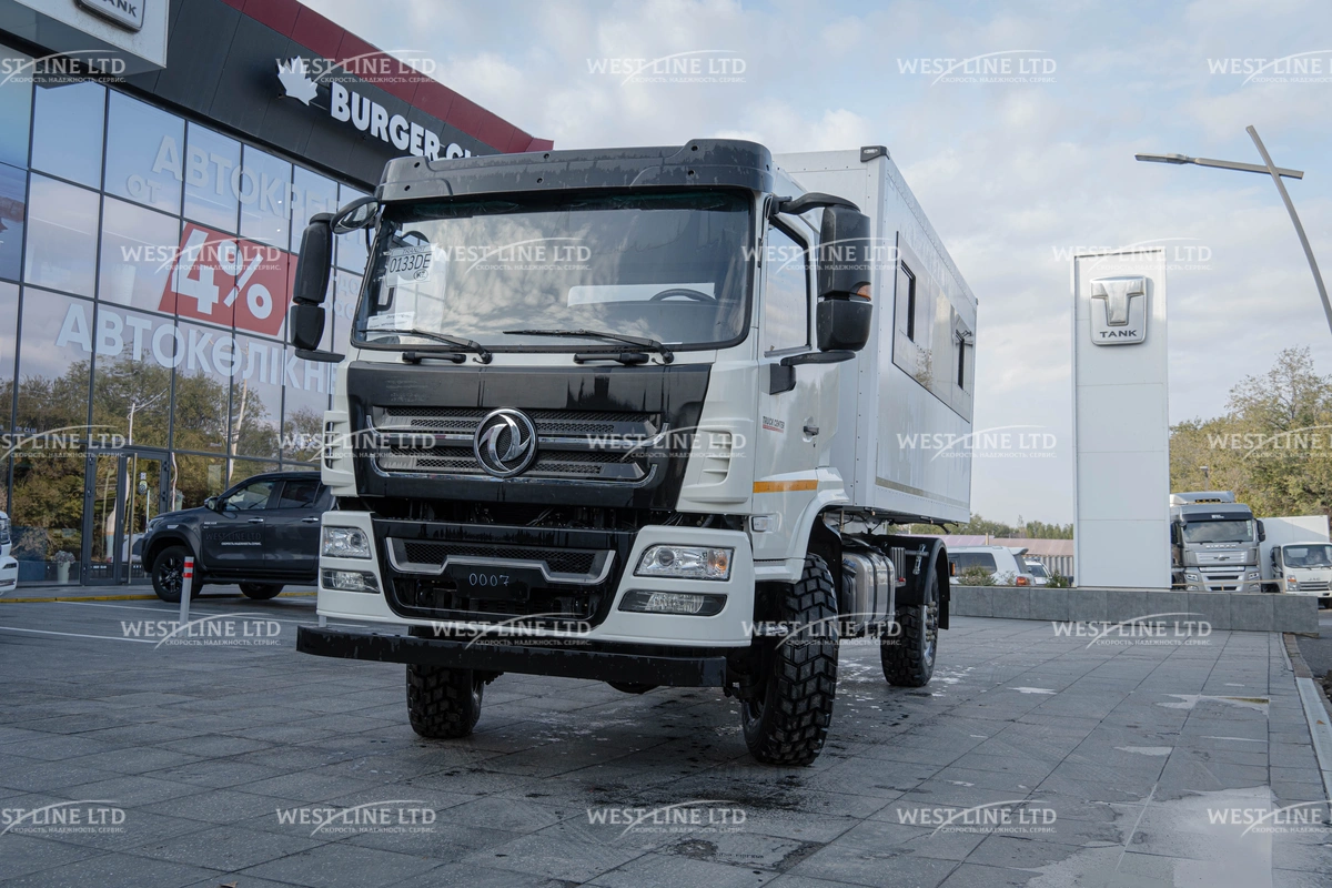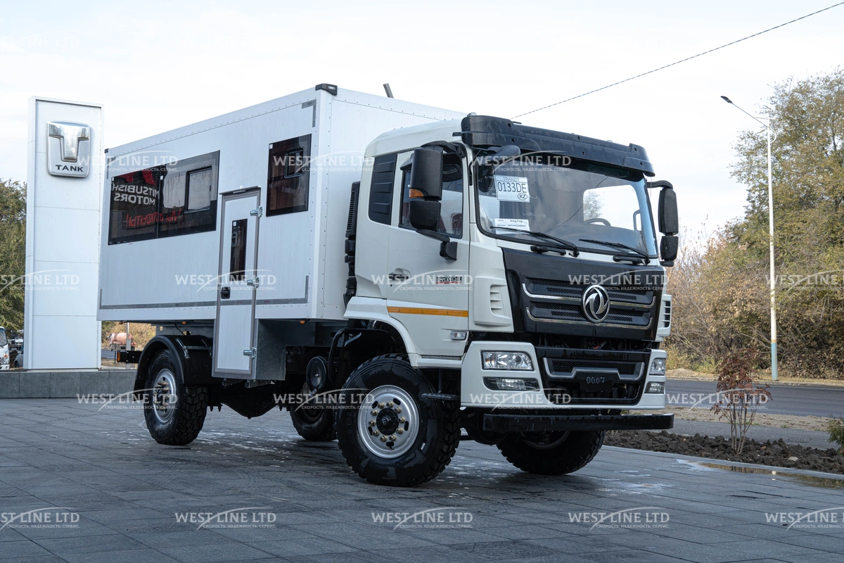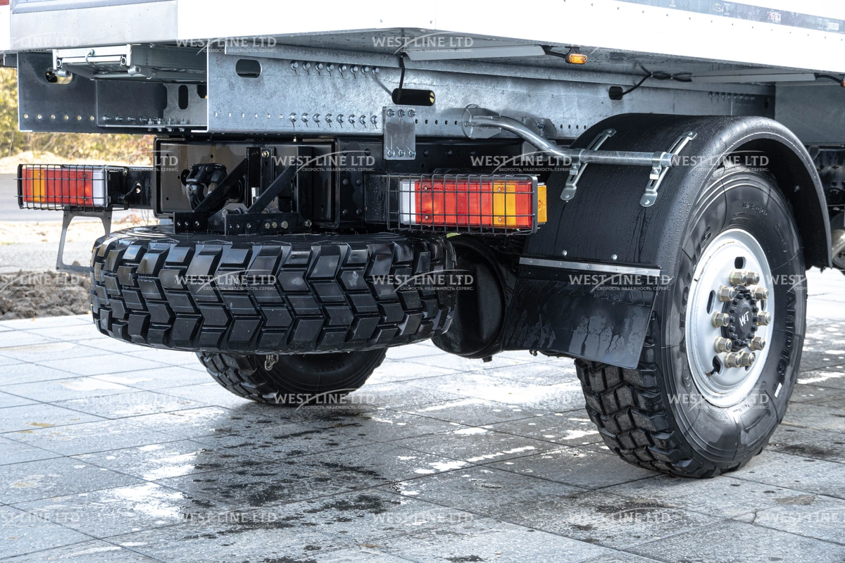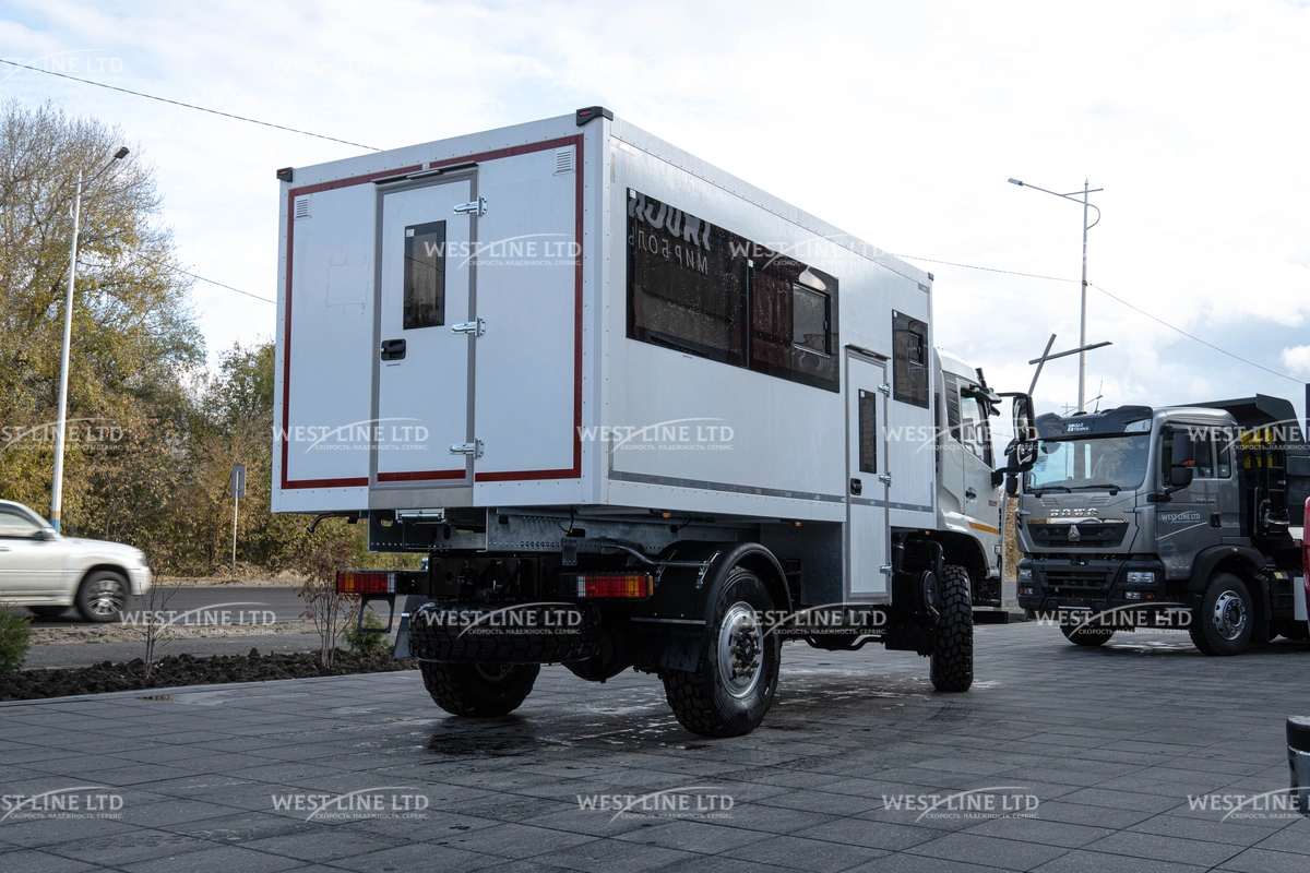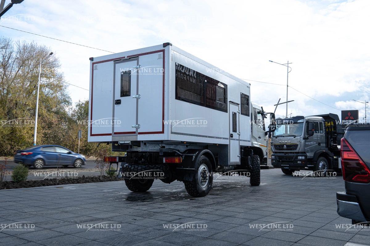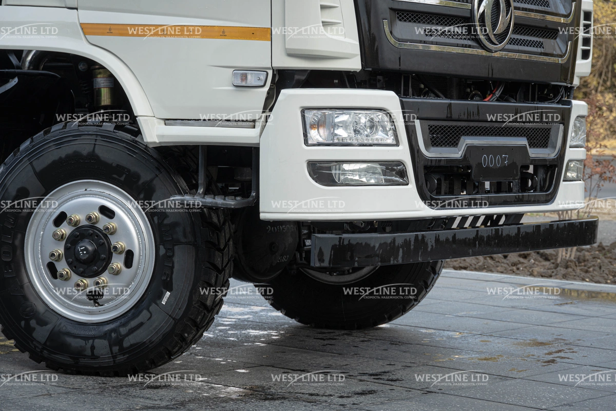 - Внедорожные возможности: Полноприводное шасси (4х4) с дорожным просветом не менее 250 мм и мощными шинами 12.5 R20 позволяет уверенно преодолевать самые сложные участки пути.