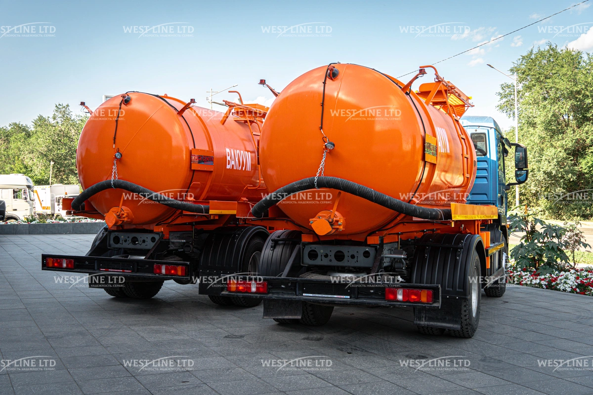 - Вместительная цистерна: Объем 11 куб. м позволяет эффективно выполнять масштабные задачи за один рейс.