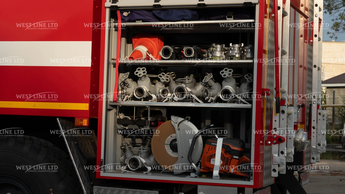 - Пожарный насос: Центробежный, НЦПН-40/100 (40 л/с) или НЦПН-70/100 (70 л/с), заднее расположение.